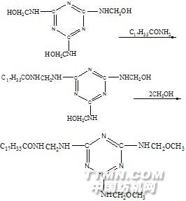 甲醚化羟基甲基三聚氰胺树脂的耐洗涤性比相应的未甲醚化的羟甲基三聚氰胺更好一些,在水中的溶解度和稳定性都有所提高,对织物的强降和泛黄都有提高,缺点是手感较硬。为了改善手感,将甲醚化三羟甲基三聚氰胺用脂肪酰胺进一步改性。.jpg)