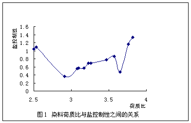 活性染料的盐感度与染料的荷质比密切相关。一般而言,染料的荷质比越大,染料的盐感度也就越大,但当染料的分子量偏大或偏小时例外。当染料分子量偏小时,即使染料的荷质比较小,仍