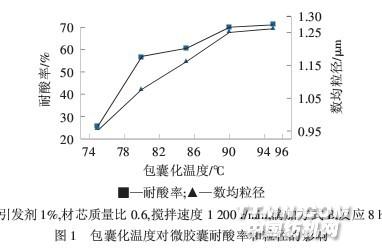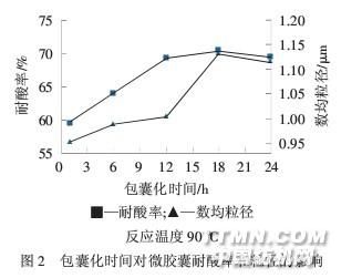 2.1.3包囊化时间包囊化时间对微胶囊耐酸率和粒径的影响见图2.