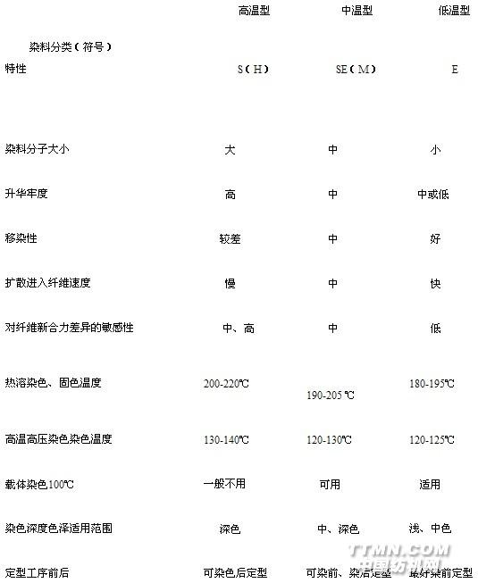 分散染料是指不含强水溶性基团,在染色过程中呈分散状态进行染色的一类非离子染料。分散染料分子较小,结构上不含水溶性基团,借助于分散剂的作用在染液中均一分散而进行染色。分散染料能上染聚酯纤维,醋酯纤维及聚酯胺纤维,成为涤纶的专用染料。分散染料大致可分为分散橙、分散蓝、分散黄、分散红组成,可以几种不同分散染料进行按一定的比例进行搭配,得到分散黑、分散绿、分散紫等分散染料。分散染料在商品加工化过程中,为了使商品染料能在水中迅速分散成为均匀稳定的胶体状悬浮液,染料颗粒细度必须达到1微米左右,在砂磨过程中加入分散剂和湿润剂,分散染料的后处理加工一般有砂磨、调料、喷雾干燥、包装组成。分散染料的应用:主要用于涤纶及其混纺织物的印染。也可用于醋酸纤维、锦纶、丙纶、氯纶、腈纶等合成纤维的印染。1.什么叫分散染料:分散染料色谱齐全,品种繁多,每一只染料均由化学合成的,再经过商品化加工,制成单一结构或拼混结构的染料出售. 分散染料是一类分子比较小,结构上不带水溶性基团的染料,染料细小微粒借助分散剂的作用在水中成为均一的水分散液,在高温高压条件下或借助载体对涤纶等合成纤维进行染色. 分散染料是非离子型的,但商品染料中某些助剂是阴离子型的,因此不能与阳荷性染料及助剂同浴染色. 分散染料不同于其他水溶性染料,对棉、麻、丝、毛、粘胶应该不沾色,因此在涤纶混纺织物染料时即应与其它染料一浴法或二浴法染色,染色条件步骤就事做严格选择。2.分散染料的分类:2.1国产分散染料按染色温度分类