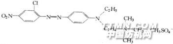 阳离子染料2)非共轭型或称隔离型阳离子染料---正电荷中心与发色体系之间有乙基隔开,不参与发色。染色牢度高,匀染性差,色不如共轭型浓艳。阳离子红GTL: