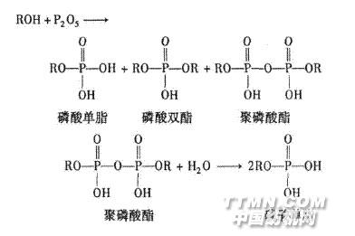 1.3 分析测定1.3.1 磷酸单、双酯含量的测定[3]准确称取1~2g样品于250mL锥形瓶中,加入50mL无水乙醇,充分振荡使之溶解,滴加2~3滴甲基红指示剂,用0.5mol/L的氢氧化钠标准溶液滴定,溶液由红色变为橙黄色,记录所消耗的氢氧化钾标准溶液的体积V1。滴加6~8滴酚酞指示剂,继续滴定,溶液由黄色变为橙红色,记录所消耗的氢氧化钾标准溶液的体积V2。加入10mL10%氯化钙水溶液,继续滴定,溶液由红色变为橙黄色,记录所消耗的氢氧化钾标准溶液的