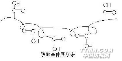 如果只有第一单体和第二单体共聚,则在松弛状态下,羧酸基分子形态示意图如下。