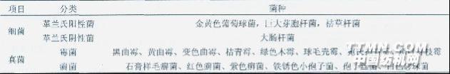 1 测试菌种的选择 测试的菌种包括细菌和真菌。在细菌中主要用革兰氏刚性菌(金黄色葡萄球菌、巨大芽胞杆菌、枯草杆菌)和革兰氏阴性菌(大肠杆菌、荧光假单胞杆菌),在真菌中主要用霉菌(黑曲霉、黄曲霉、变色曲霉、桔青霉、绿色木霉、球毛壳霉、宛氏拟青霉、腊叶芽枝霉)和癣菌(石膏样毛癣菌、红色癣菌、紫色癣菌、铁锈色小孢子菌、孢子丝菌、白色念珠菌)。 在抗菌纺织品抗菌性能的评价中,菌种的选择必须具有科学性和代表性。表1列出的菌种、自然界(包括人体皮肤及粘摸上)的分布较为广泛。表1 自然界中存在的主要菌种