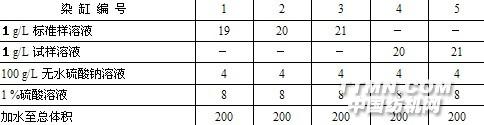 1.方法原理目测评定染色强度是以标准样品和试样染得相等深度颜色时,用染料标次样品与试样用量的百分数表示染色强度。2.仪器和试剂(1)染缸。(2)染色测定的纤维用4 g(准确至0.01 g)羊毛线(或纯羊毛织物),染色深度0.5%,染液体积比1∶50。染液的配制方法见表9-14所示,所取体积准确至0.1 mL。表9-14 染液的配制