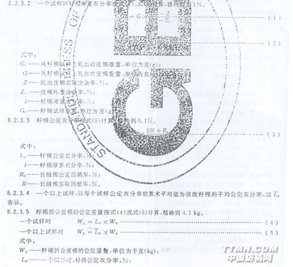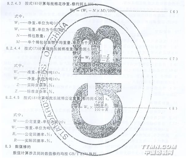 8.2.4成包皮棉公量检验 8.2.4.1公量检验以批为单位,逐批称量、记录毛重。称量衡器精度不低于1‰,称量时,应尽量接近衡器最大量程。 8.2.4.2根据批量大小,从批中抽取有代表性的棉包2包包,开包称取包装重量,计算单个棉包包装物的平均重量,修约到0。01KG