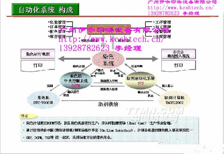 广州伊咖印染设备有限公司是一家专注为纺织印染企业实现全面工业自动化控制系统、中央监控管理系统、染厂整合管理系统、中央注料系统、印染助剂自动计量输送系统、称重系统、化学化料系统和企业管理信息系统的软件技术企业,为纺织印染行业提供全面的解决方案。