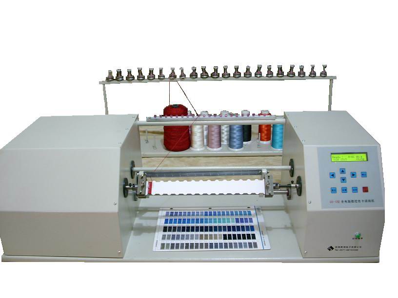 本机主要用于制作纱线色卡等多种卡片型绕制。能在30-320MM长度与10-80MM宽度平板才料上绕制1-25个色彩,可定做更多种。可设定要求绕制卡的宽度,层数,设定参数能全部永久保存。保存单片机中,电源关闭不会丢失。
